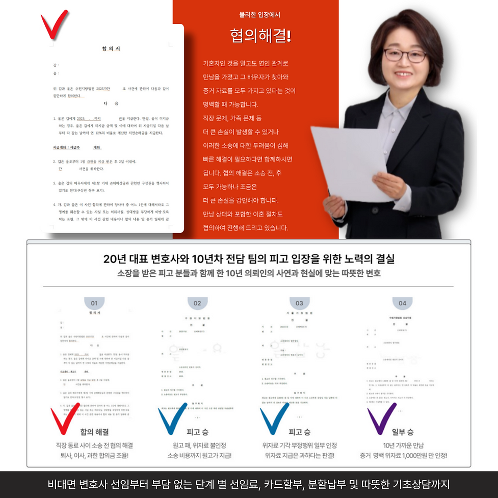기초 상담은 전화 상담이 더 빠르고 좋습니다. 자세한 상담은 방문 상담하시면 됩니다. 오전 7시 30분부터 함께하여 드리고 있습니다. 의뢰인의 마음 안정을 우선하여 해결의 시작을 원만하게 하고자 늘 따뜻하고 친절한 상담을 우선하고 있습니다. 오랜 경험과 실력으로 양측의 마음을 파악하여 의뢰인이 다시 일상의 회복, 권리의 회복, 법익의 확보, 피해의 구제를 받으실 수 있도록 #민사 #형사 #가사 #이혼 #부동산 #상간자소송 변호에 최선을 다하고 있습니다. 언제든 방문하시고 편안한 마음으로 부담 없이 전화 주시면 됩니다. 언제든 오시거나 전화 주세요. 경험과 실력으로 함께합니다. 위 글은 책임을 지지 않습니다. 자세한 것은 꼭 방문 정밀 상담 받으셔야 합니다.